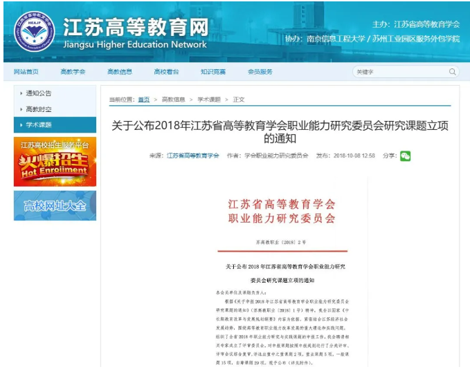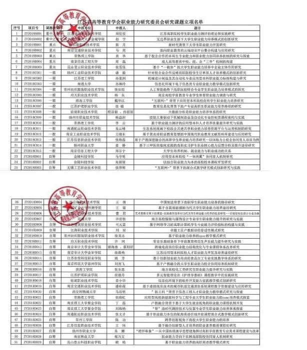 2018年10月,由江苏省高等教育学会主办、JYPC全国职业资格考试认证中心与南京信息工程大学承办的职业能力研究课题,共评选出: