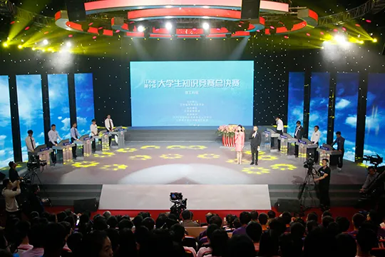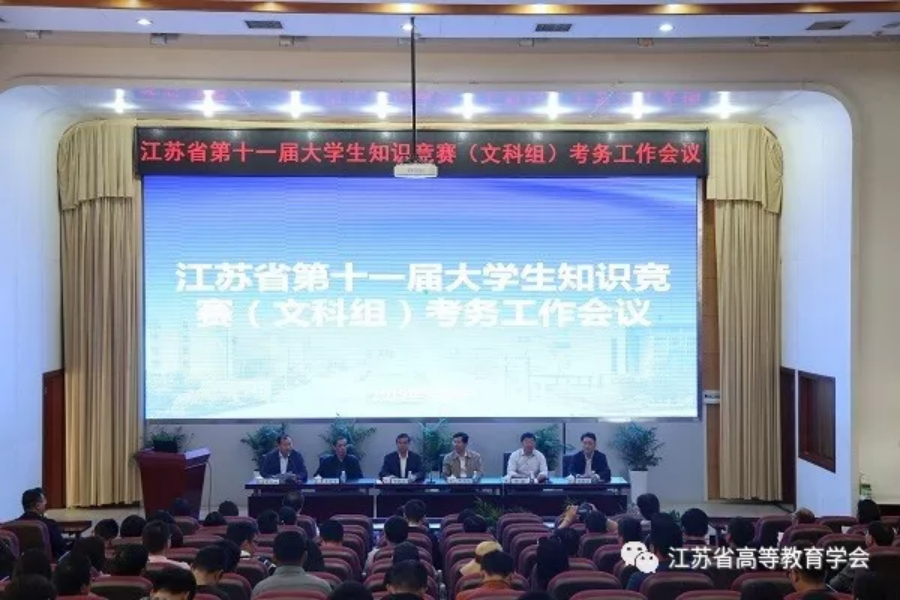 2019年10月19日,江苏省第十一届大学生知识竞赛(文科组)总决赛暨颁奖在江苏教育频道举行。中国高等教育学会副会长、秘书长姜恩来,省教育厅副厅长王成斌,省高等教育学会会长丁晓昌出席并讲话。来自省教育厅相关处室、江苏省教育考试院、江苏教育报刊总社以及入围决赛选手所在高校的校领导、参赛选手高校的方阵同学、获奖代表等300余人参加活动。本届大赛由省高等教育学会主办,江苏英才职业技能鉴定集团、JYPC全国职业资格考试认证中心全程支持和协助。